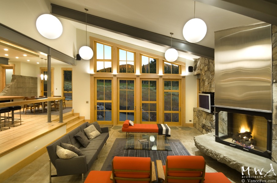 "Larry and Rosemary Ward's 4,000-square foot home is the most controversial in North Lake Tahoe's gated community of Lahontan, Calif. It's not every day, after all, that a modernist house is built on a golf course. "Amidst the traditional log homes of Lake Tahoe, a modernist retreat stands out... Everybody who walks in says, 'Whoa!'" says Rosemary." -Ski Magazine March/April 2006