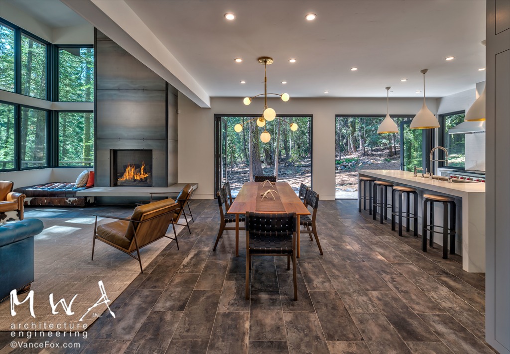 This gem is tucked into the forest on Tahoe's West Shore. Privacy and natural light play together with generous windows, open flowing plan, and a floating stair. Rustic materials on the exterior camouflage it in the trees while clean bright finishes in the interior create a modern oasis.