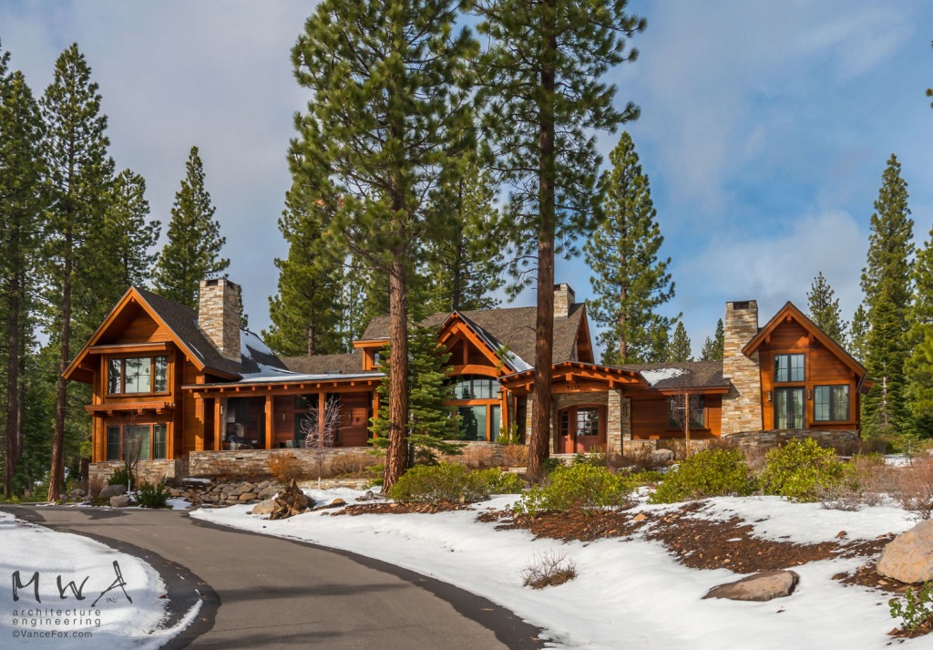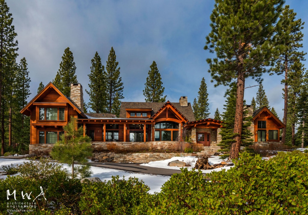 This family retreat is in a traditional craftsman style. A south facing outdoor space welcomes the sunlight while a partial height stone wall creates privacy from the road.