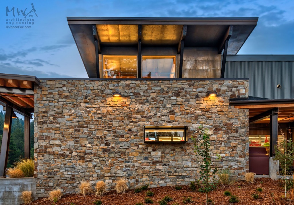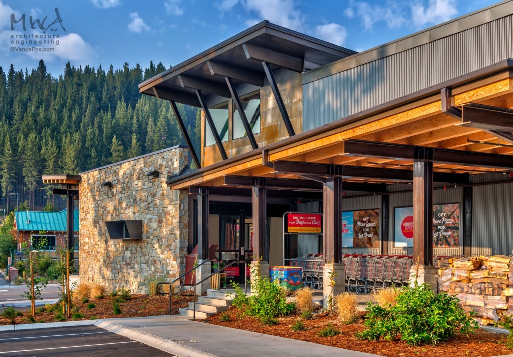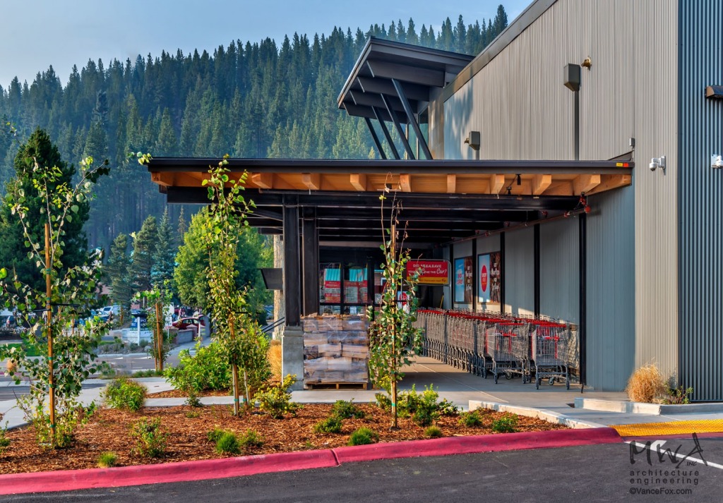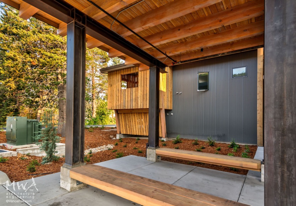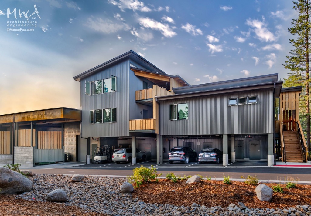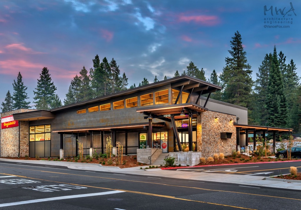 This building not only offers a commercial space but also includes a residential element that provides 3 new housing units in the heart of Truckee. Benches at various locations allow people of the community to stop, rest and gather allowing for a function beyond what is housed within the building. The many rooflines, forms, and exterior materials invite people to take a look and experience what is possible with innovative and thoughtful commercial design that is not just a box.