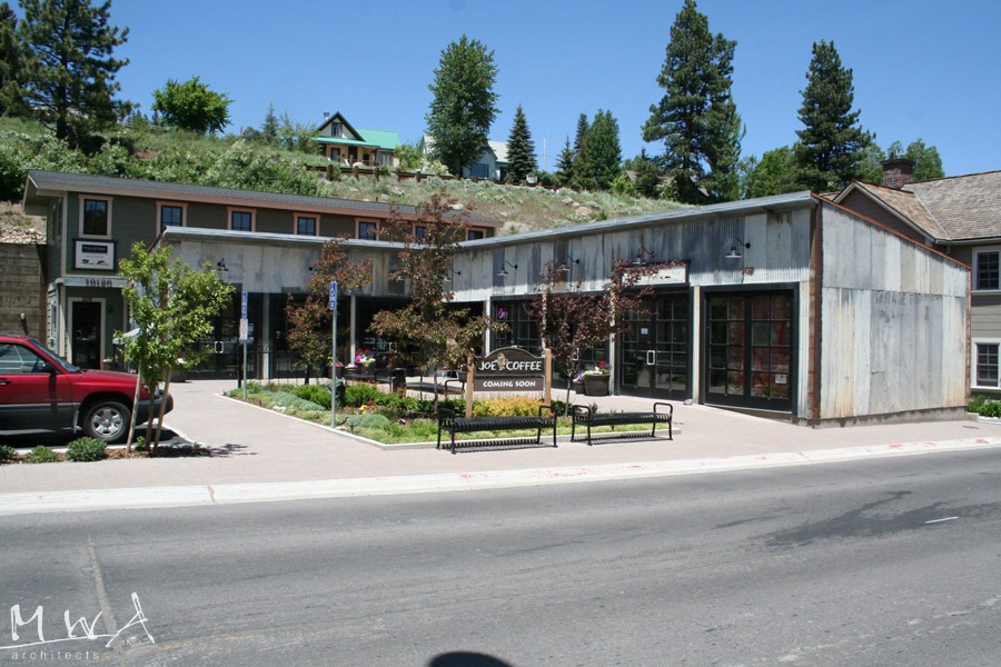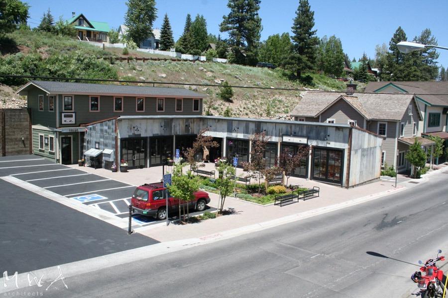 Metal garage doors were replaced with large windows, the old roof was replace with Cor-ten steel and the dirt floor updated to a slab. To create a commercially viable building, additional square footage was required, but had to be done within Truckee’s Historic requirements. MWA expanded the structure by burrowing into the adjacent slope and adding on a two-story, wood-sided annex. In the end, we were able to expand the original 1,900 SF to the new 4,190 SF across the two buildings. The finished product is a pleasing design that tenants also appreciate for its spaciousness and energy-saving orientation