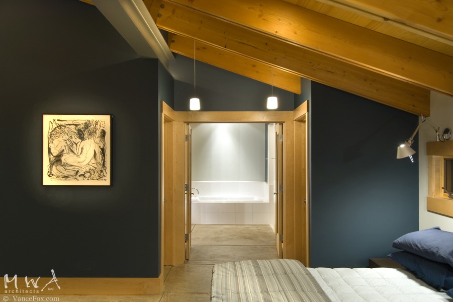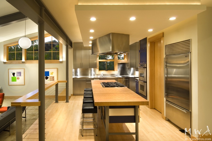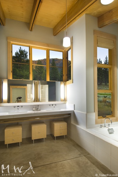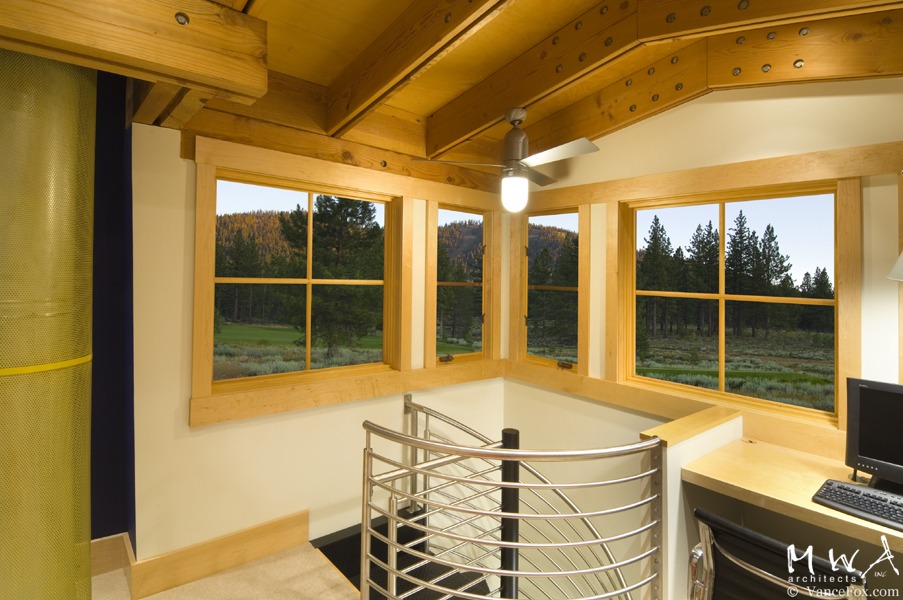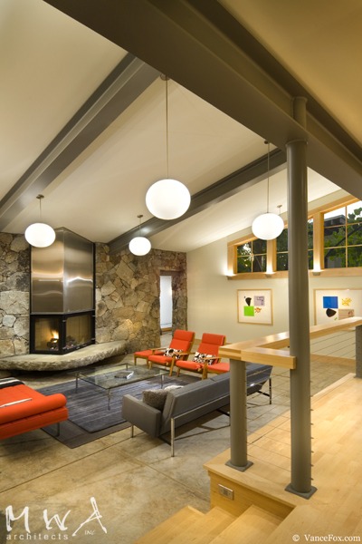 "Larry and Rosemary Ward's 4,000-square foot home is the most controversial in North Lake Tahoe's gated community of Lahontan, Calif. It's not every day, after all, that a modernist house is built on a golf course. "Amidst the traditional log homes of Lake Tahoe, a modernist retreat stands out... Everybody who walks in says, 'Whoa!'" says Rosemary." -Ski Magazine March/April 2006