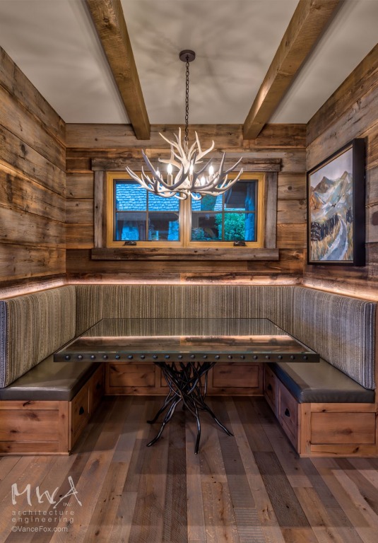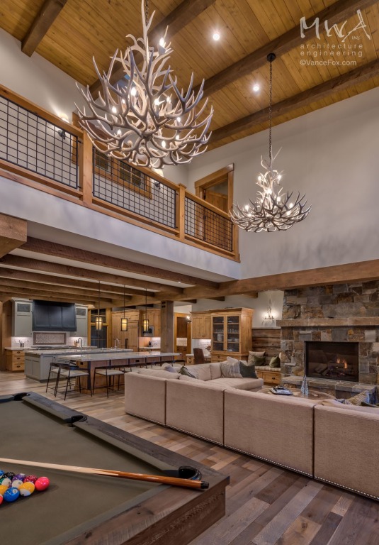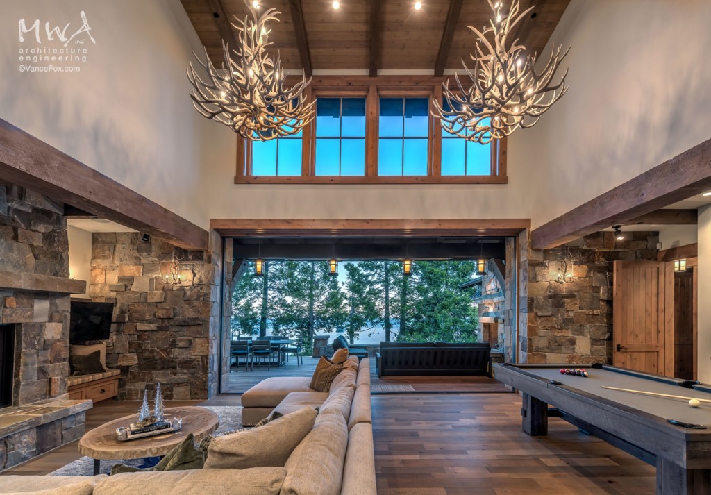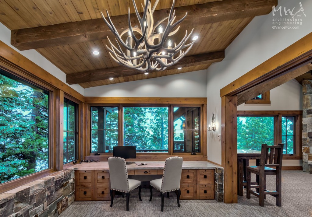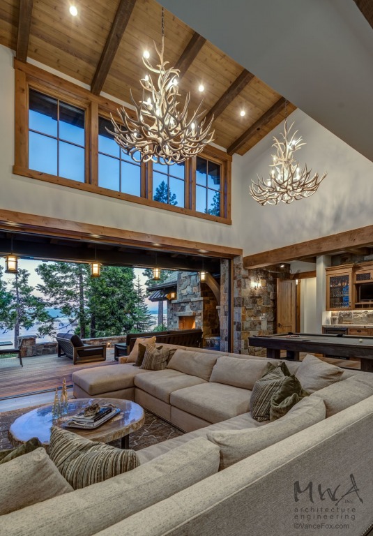 A mix of rustic and contemporary elements give the home a balance of old and new creating a luxury mountain home with a fresh approach to a timeless Tahoe design. This home is relaxed and includes design details to accommodate guests while offering an amazing Tahoe experience. Grouping the social spaces in the central core gives the home an easy and casual feel to meet the client’s goals and offer a large entertaining hub. The layout and design of the home accentuate the incredible lake views with a warm and inviting interior.