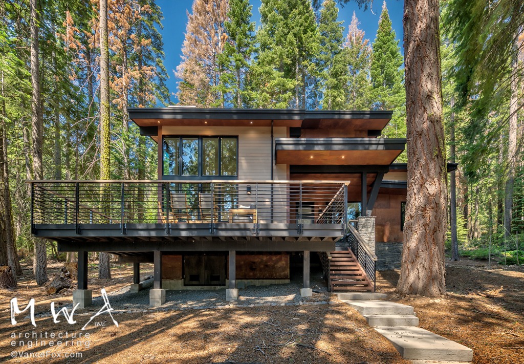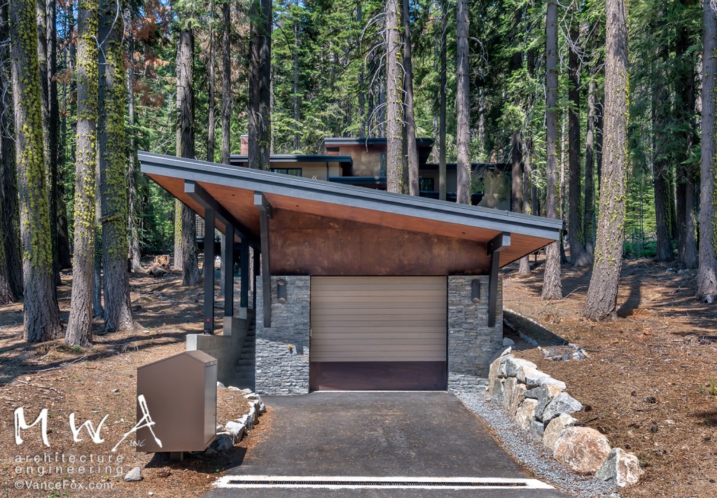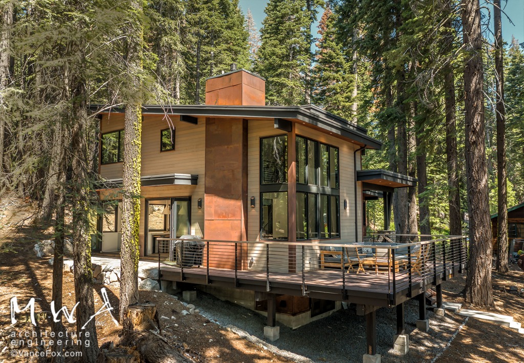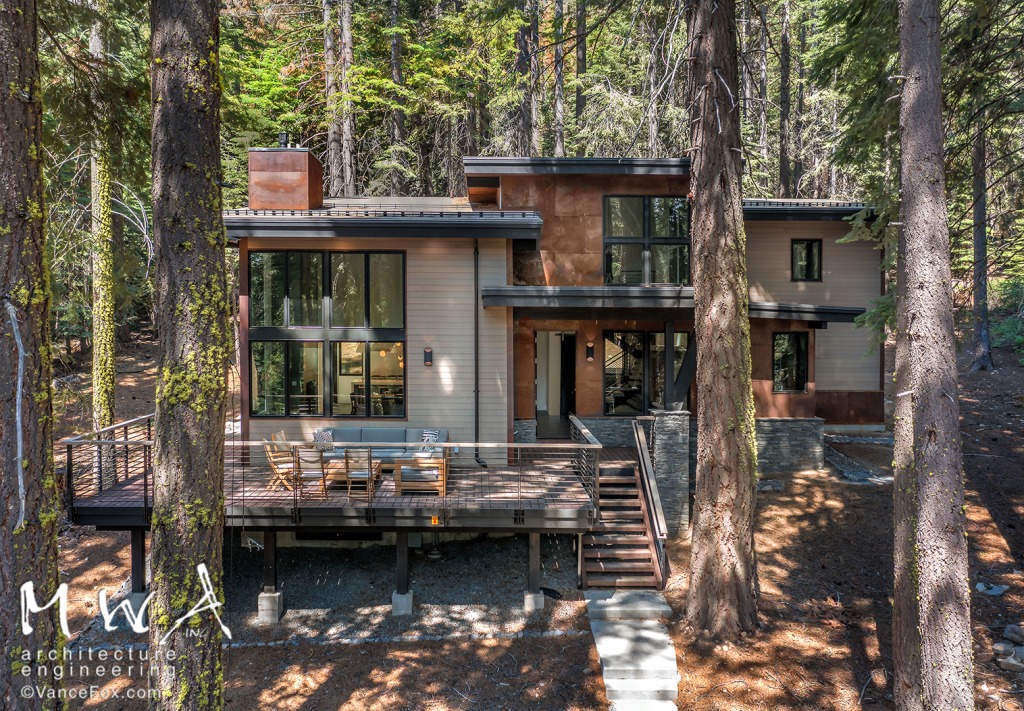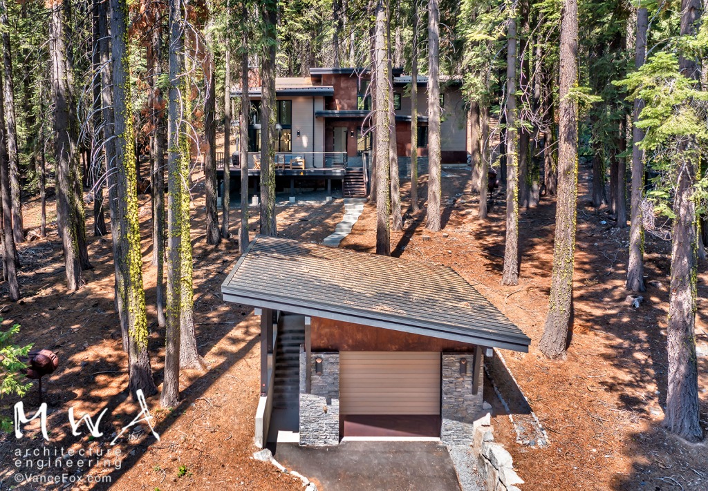 This gem is tucked into the forest on Tahoe's West Shore. Privacy and natural light play together with generous windows, open flowing plan, and a floating stair. Rustic materials on the exterior camouflage it in the trees while clean bright finishes in the interior create a modern oasis.