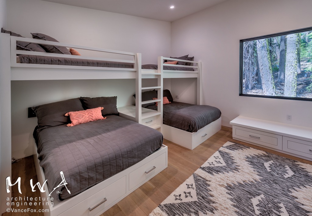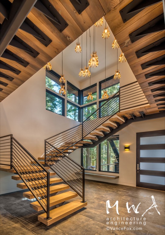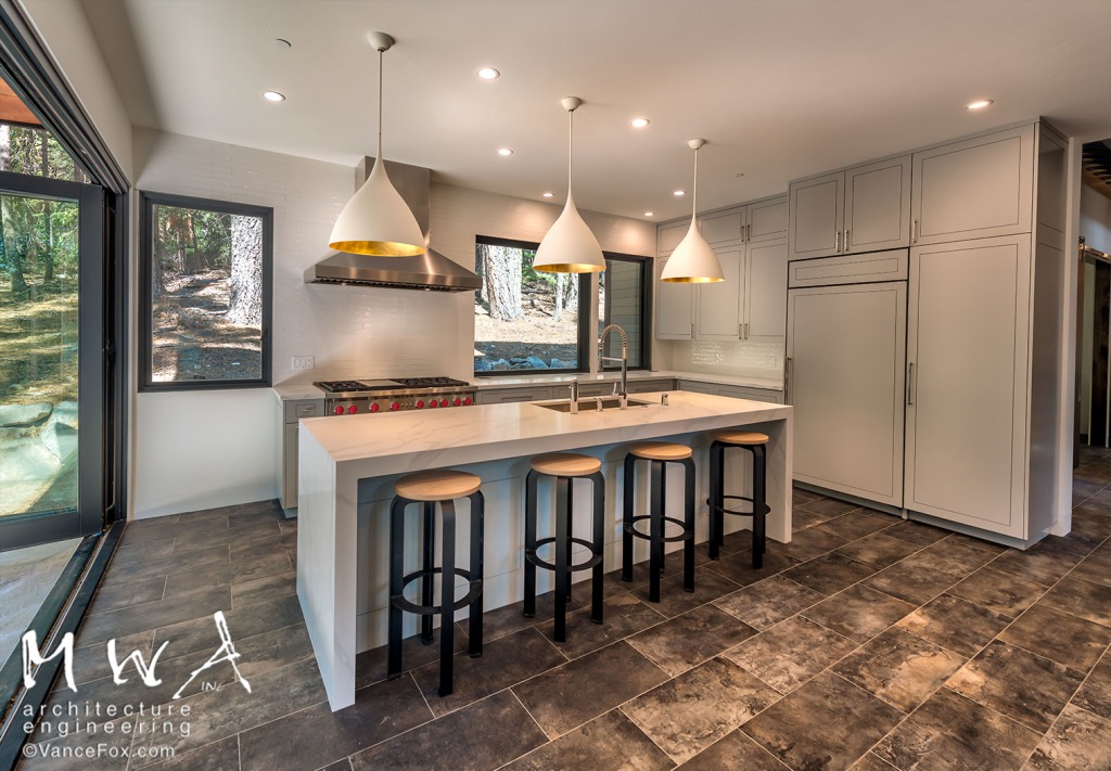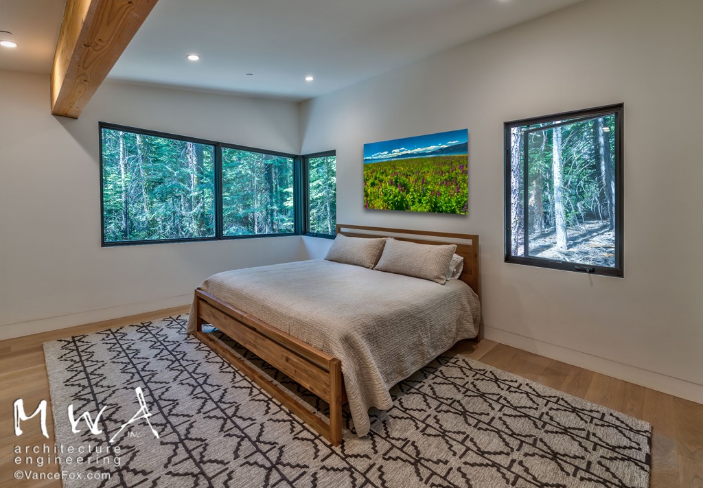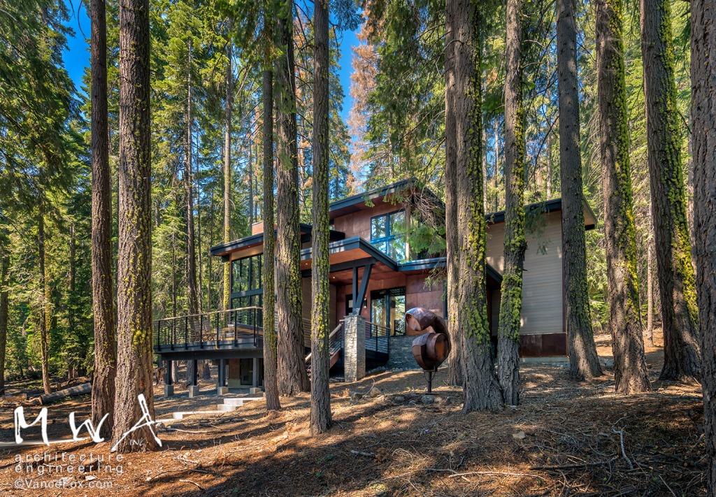 This gem is tucked into the forest on Tahoe's West Shore. Privacy and natural light play together with generous windows, open flowing plan, and a floating stair. Rustic materials on the exterior camouflage it in the trees while clean bright finishes in the interior create a modern oasis.