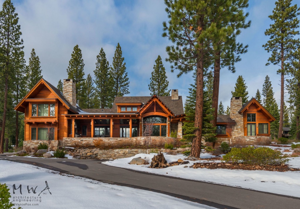 This family retreat is in a traditional craftsman style. A south facing outdoor space welcomes the sunlight while a partial height stone wall creates privacy from the road.