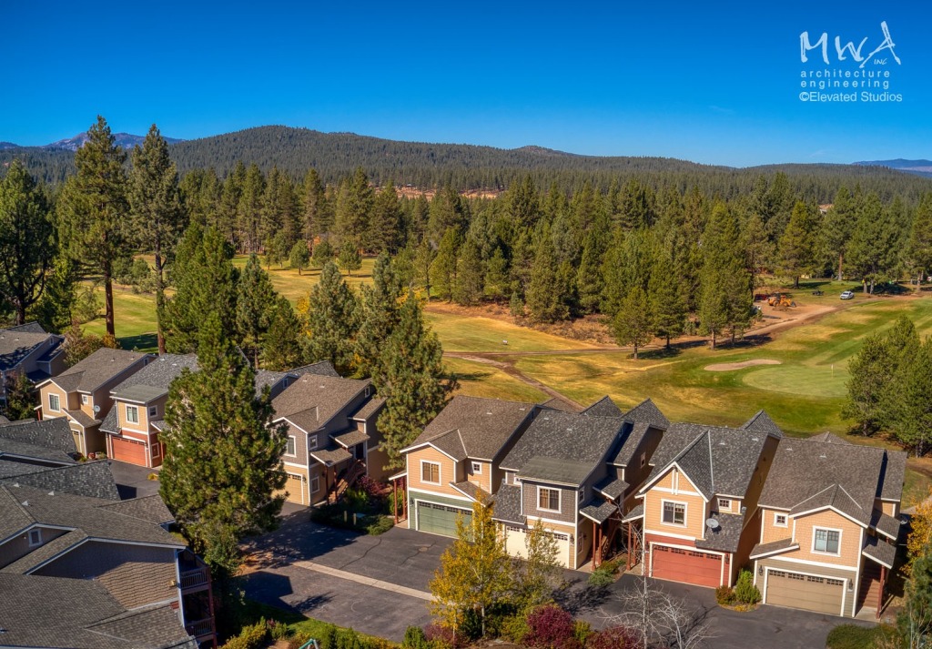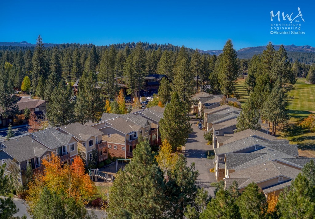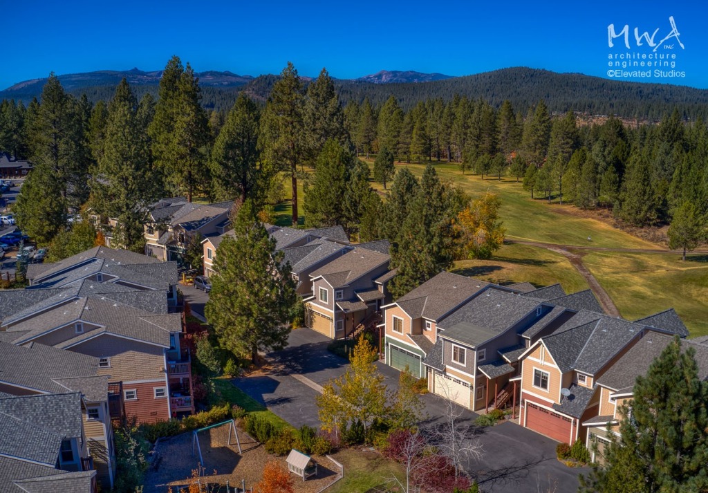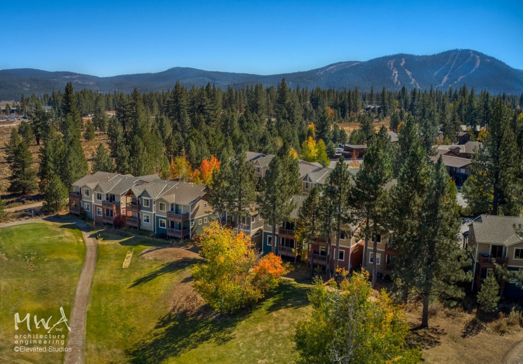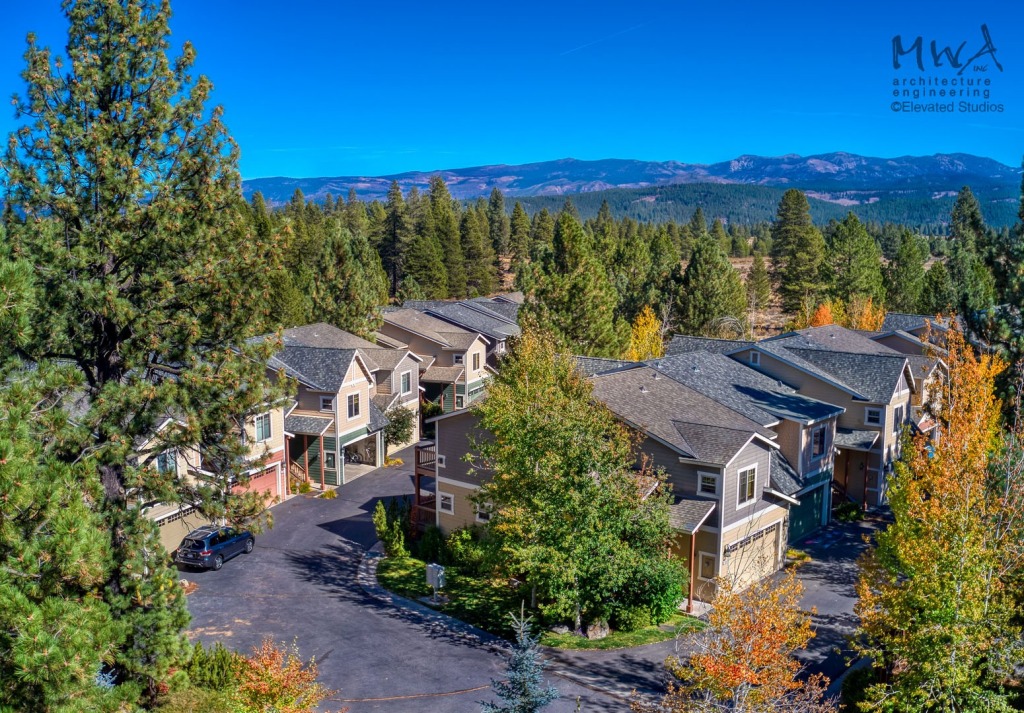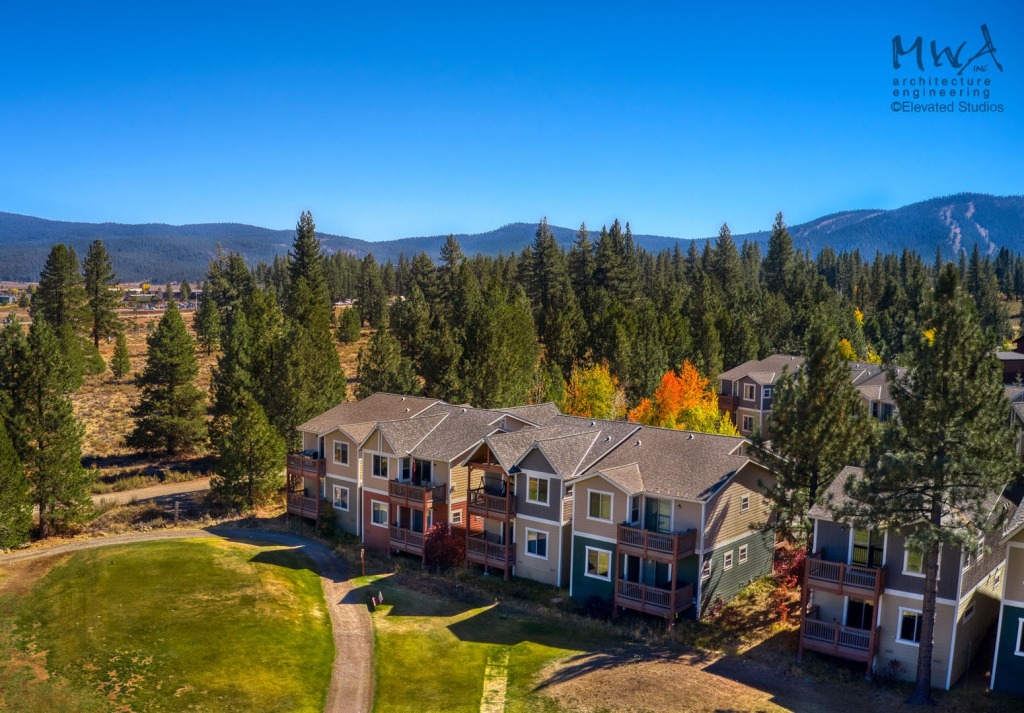 As part of a mixed-use project The Rock that includes about 60,000 SF of commercial retail and office are 19 units of residential condominiums adjacent to the Ponderosa Golf Course. These were incentive units to increase the housing stock in Truckee. At the time, the planning commission considered them affordable not by mandate or subsidy but by their smaller-than-market size.
