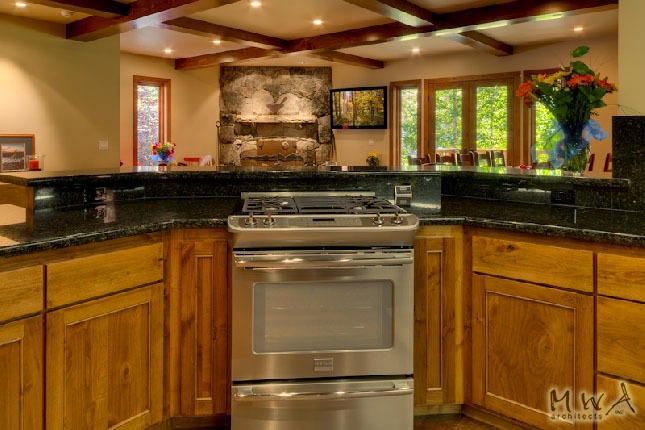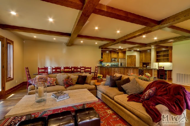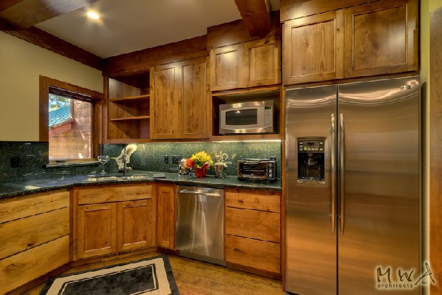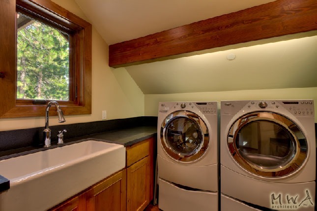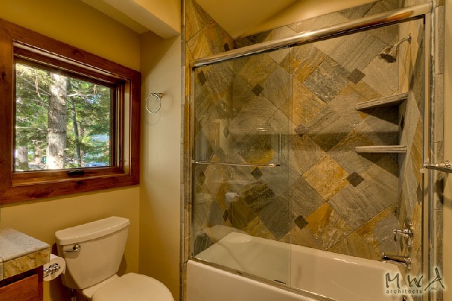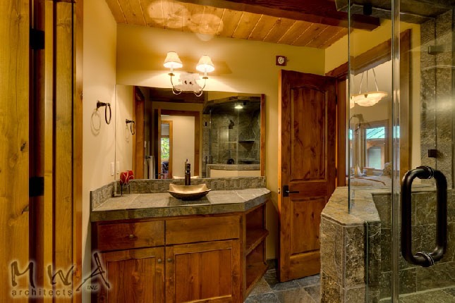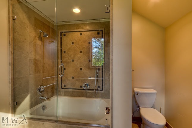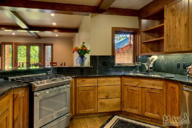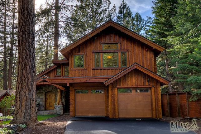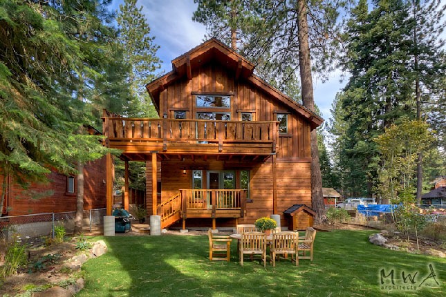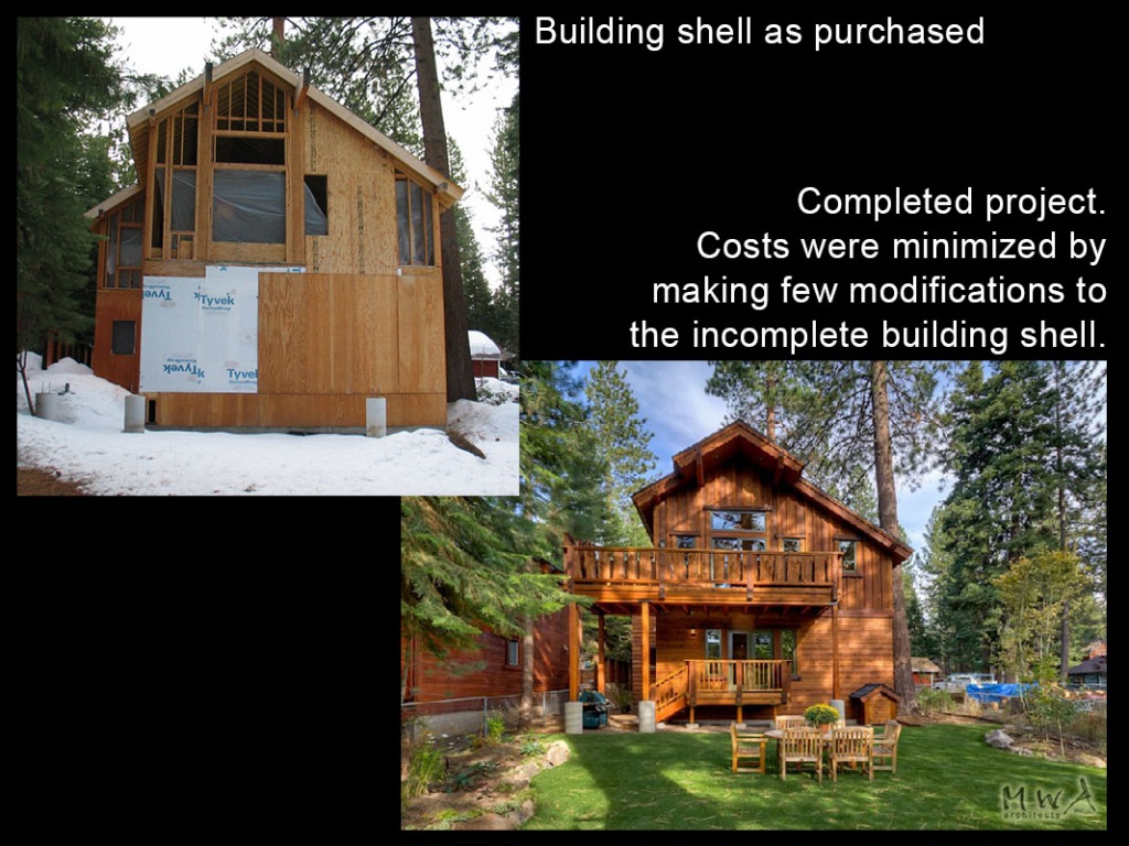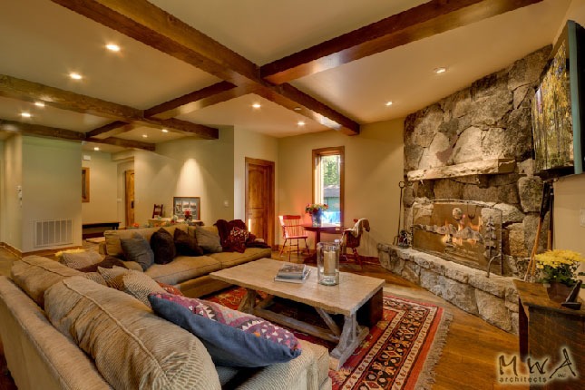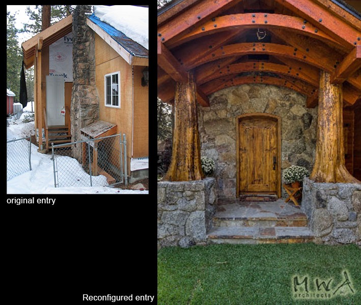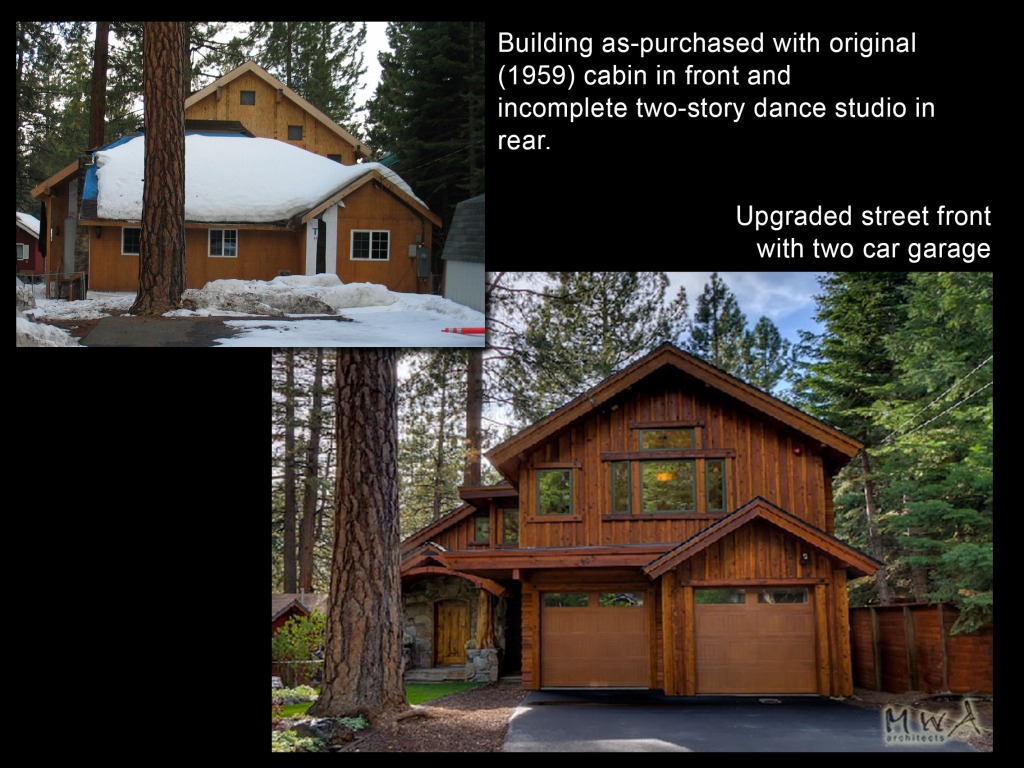 Like many old Tahoe homes, this home experienced many remodels over the years. First built in 1959, the owners outgrew the old family cabin and decided to upgrade. There original goal was to add a large dance studio to the house with 2nd story living space above. The project was never completed and was put on the market as an incomplete project. Eric Bervid of Bervid Custom Homes saw the great potential of the property and purchased it. He approached MWA to design a "remodel" to convert the property into a home worthy of its golf course location and proximity to the lake. The old cabin was converted into a two car garage, and the main living space was incorporated into the incomplete shell of the addition.